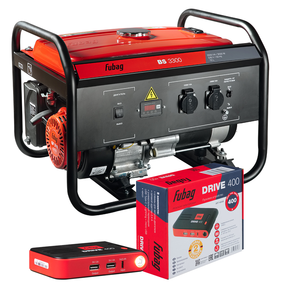 Бензиновый генератор FUBAG BS 3300 + Пусковое устройство DRIVE 400 в ПОДАРОК